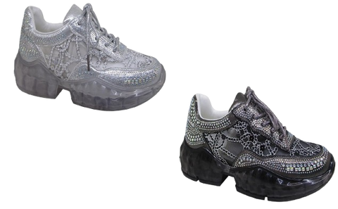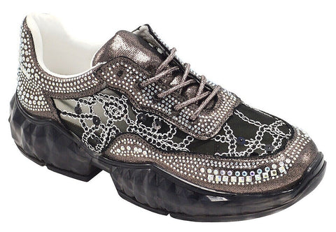 Wholesale Women's Sneakers Lace Up Embellished Trendy Comfortable Women's Shoes Jade NGB2